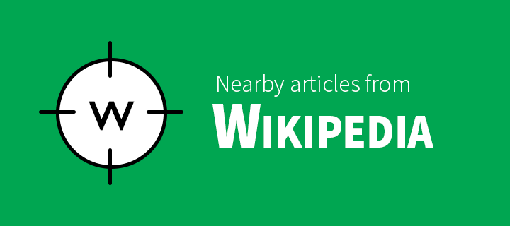 Find interesting places around you by looking for Wikipedia articles near your current location. Note: Wikipedia Wordmark is a trademark of the Wikimedia Foundation and is used with the permission of the Wikimedia Foundation. We are not endorsed by or affiliated with the Wikimedia Foundation.