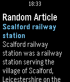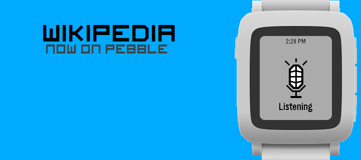 Search Wikipedia from your Pebble! You can now search Wikipedia using the microphone on your Pebble Time or find articles based on your current location or simply view random articles. All languages supported by Wikipedia can be used in this app. This app is not affiliated or endorsed by Wikipedia or the Wikimedia foundation.