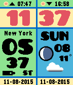 The ultimate World time clock for Pebble Time, Pebble 2 and Pebble Round. Configurable for 35+ cities/time zones, including half-hour offset zones. Now supports 3 favorite time zones. Cycle through the 3 favorites with a flick of the wrist, no need to use the phone to switch between favorite timezones. Other features: Supports 12/24 hour local clock with A/P indicator. Weather icon with temperature in C or F (local weather). Moon phase display. Battery icon. Local sunrise and sunset time. Days of week in English, Dutch, French, German, Italian, Spanish and Klingon. A-Grade energy friendly (extremely low battery usage). BT disconnect warning (temp goes red with optional vibration). Keeps track of DST and timezone date. DST on dual time can be set to Automatic (recommended), On or Off. This watchface is also available as a Watch App. Even more information and completely configurable from your wrist! Now includes an on-board compass! 2 days free trial, price $2.99. This is a bundle offer. If you purchase this watchface you can download the watchapp (same name) for free!