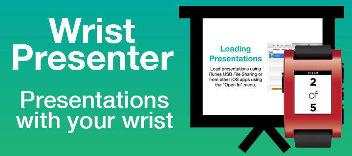 Use your Pebble to control presentations on your phone with Wrist Presenter. Easily control your presentation wirelessly with you Pebble Smartwatch. Instead of purchasing an expensive wireless remote use what you already have. To view on a projection screen just mirror your iPhone via Airplay or with a Lightening adapter.On Android, view your presentations with a Miracast or HDMI adapter.