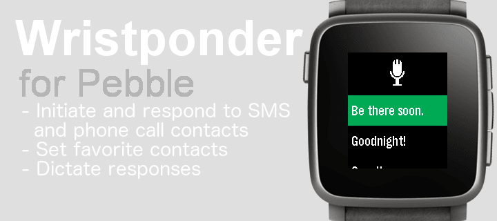 **Requires Android companion from Google Play Store!** Send customized pre-set (or 'canned') SMS messages from your Pebble! Perfect for times when you need to reply, but it isn't possible to use your phone. Add, edit, delete, import and export your list of responses, then choose from them when you open the watchapp. The last contact you received an SMS or Call from is also displayed.