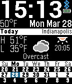 This watchface is a forked version of ForeCal by SeaPea Software - instead of using Yahoo Weather, this version uses the Wunderground API! Note that FREE registration with Wunderground.com is REQUIRED to get an API key! I would encourage you to download the amazing, original version of ForeCal unless you specifically like Wunderground as much as me! Many thanks to SeaPea for making such a great watchface! Features: -Battery and bluetooth indicator -Current conditions based on city and state updated every 20, 30, or 60 minutes -High temp, low temp, and forecast for current day (or next day if after user-specified time) -Calendar at bottom of watchface Limitations: -Requires Wunderground.com free API key -Only supports weather in the United States, sorry :( -No GPS support, must enter city and state