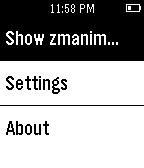 Zmanim - Halachic times Finally! View halachic times on your watch on the go! Shows the following times (more coming very soon...) - Sunset - Latest shema (Gra and Baal Hatanya) - Latest amidah (Gra and Baal Hatanya) - Chatzot (Midday) - Earliest mincha - Plag HaMincha - Sunset You can choose between seeing zmanim for the current time, yesterday, or tomorrow. If you want anything added to the app, email me and I will respond asap, I'm very open for new ideas.